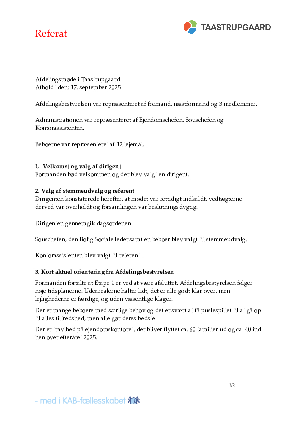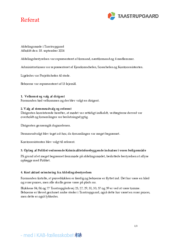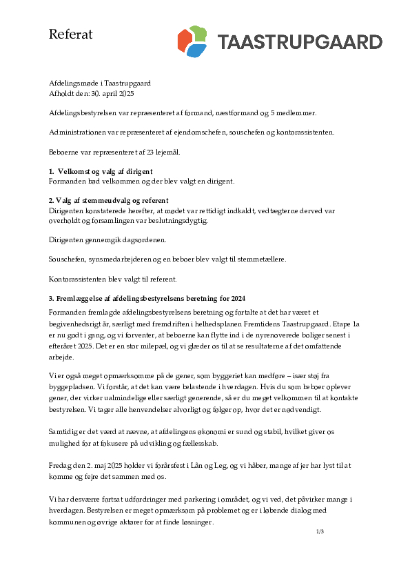 Her kan I læse referater fra både Afdelingsmøder som omhandler om afdelingens regnskab for året før som skal vedtages om foråret og næste års budget, som skal godkendes om efteråret.
