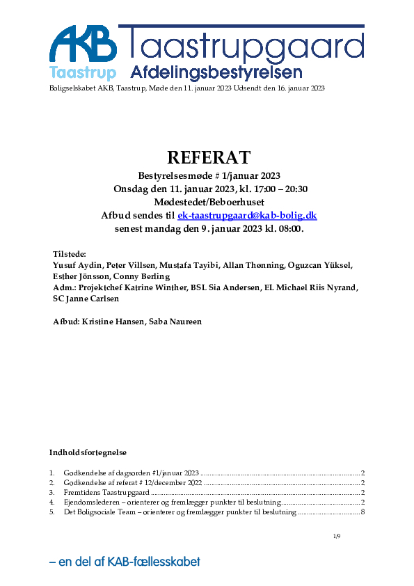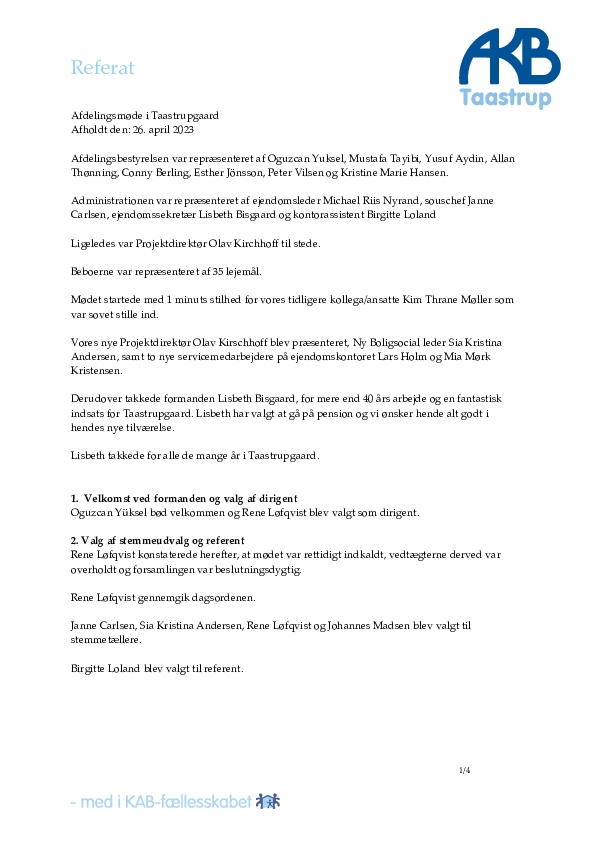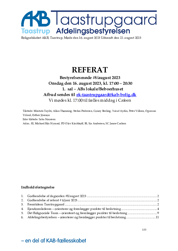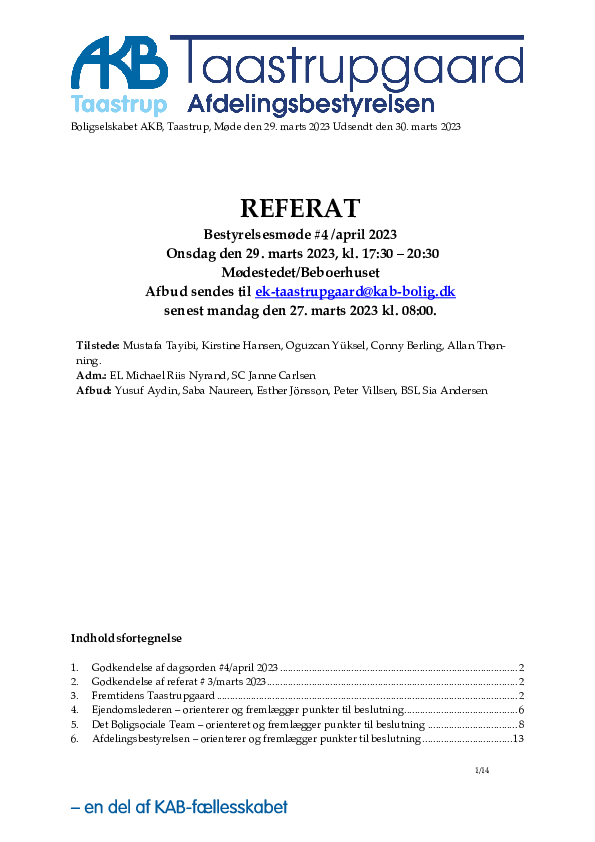 Afdelingsbestyrelsens møder. Referaterne giver et indblik i vores beslutninger og de emner, vi diskuterer.